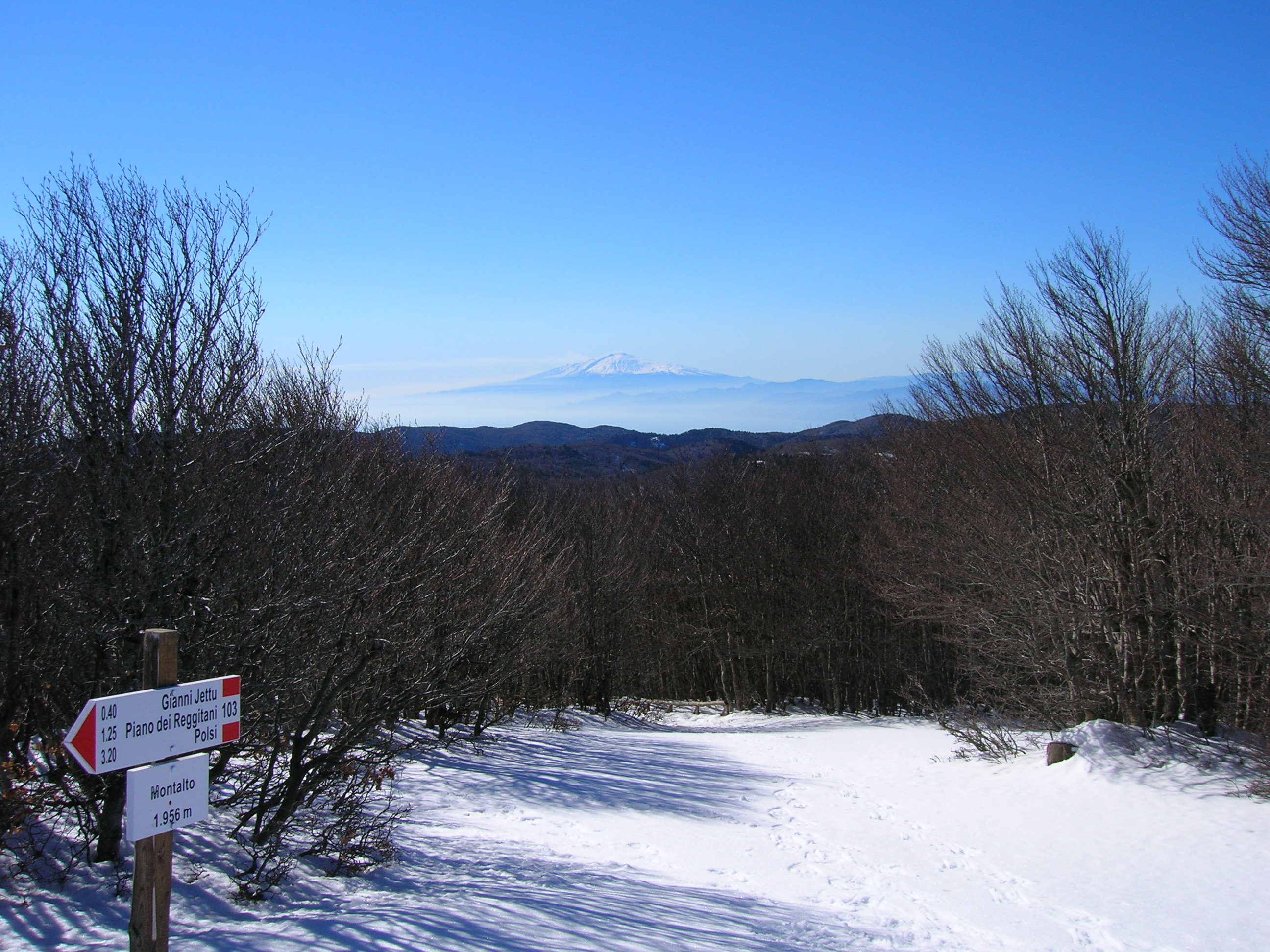 La cima di Montalto domina con i suoi 1956 m di altezza l’intero massiccio aspromontano. Da essa, a raggera, si dipartono innumerevoli profonde e strette vallate, una più bella e differente dell’altra, ognuna con una storia da raccontare: quella della “La Verde” e i suoi profondi canyon, quella dell’Amendolea e il suo popolo grecanico che ci ha vissuto per lunghissimi secoli, quella della Bonamico ed il suo lago naturale ormai estinto, tutte valli un tempo navigabili. A fare da cornice a questa spettacolare visuale, il più grande vulcano attivo d’Europa: l’Etna, ed ancora le Isole Eolie e la dorsale appenninica che procede con le Serre, la Sila ed il Pollino.